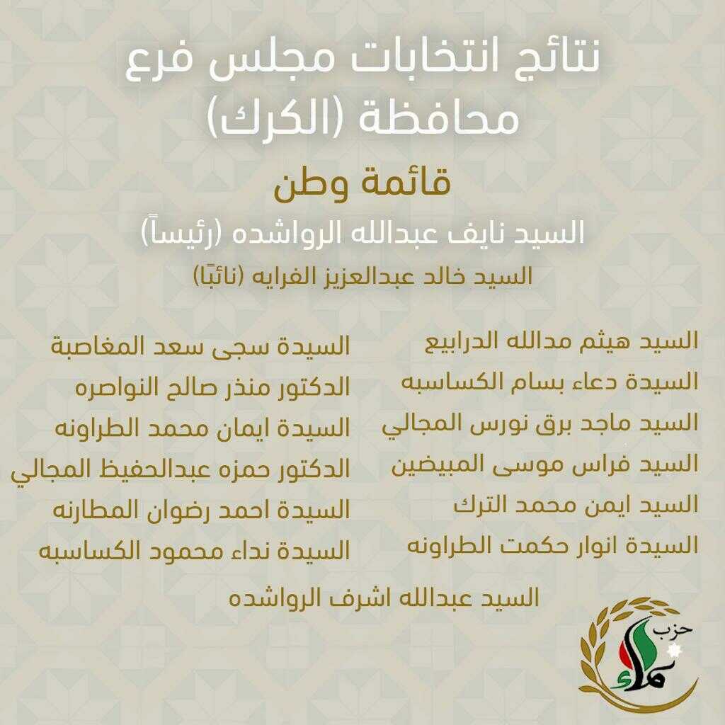 22 الاعلامي - عقد حزب نماء السبت الموافق 12/8/2023 انتخابات مجالس الفروع لكافة محافظات المملكة حيث حدد الحزب حسب نظامه الداخلي ب ١٥ عضو لكل محافظة لتغطي كافة الويه المحافظات وكما تم اعلان النتائج عن الانتخابات حسب التالي .