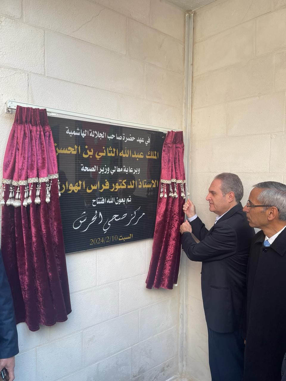 ففي المفرق افتتح مركز صحي الحرش الأولي، وفي الرمثا افتتح مركزاً تخصصياً لطب الأسنان ضمن مبنى مركز صحي الرمثا الغربي، وقسما للتأهيل والعلاج الطبيعي وعيادة الإقلاع عن التدخين في مركز صحي سهل حوران الشامل.