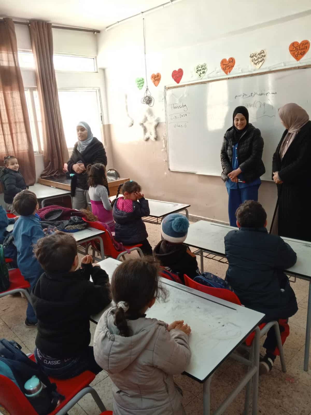 الخريشا تتفقد سيرالعملية التعليمية في مدرسة زهرة المدائن الأساسية المختلطة للاجئين السوريين/ الفترة المسائية