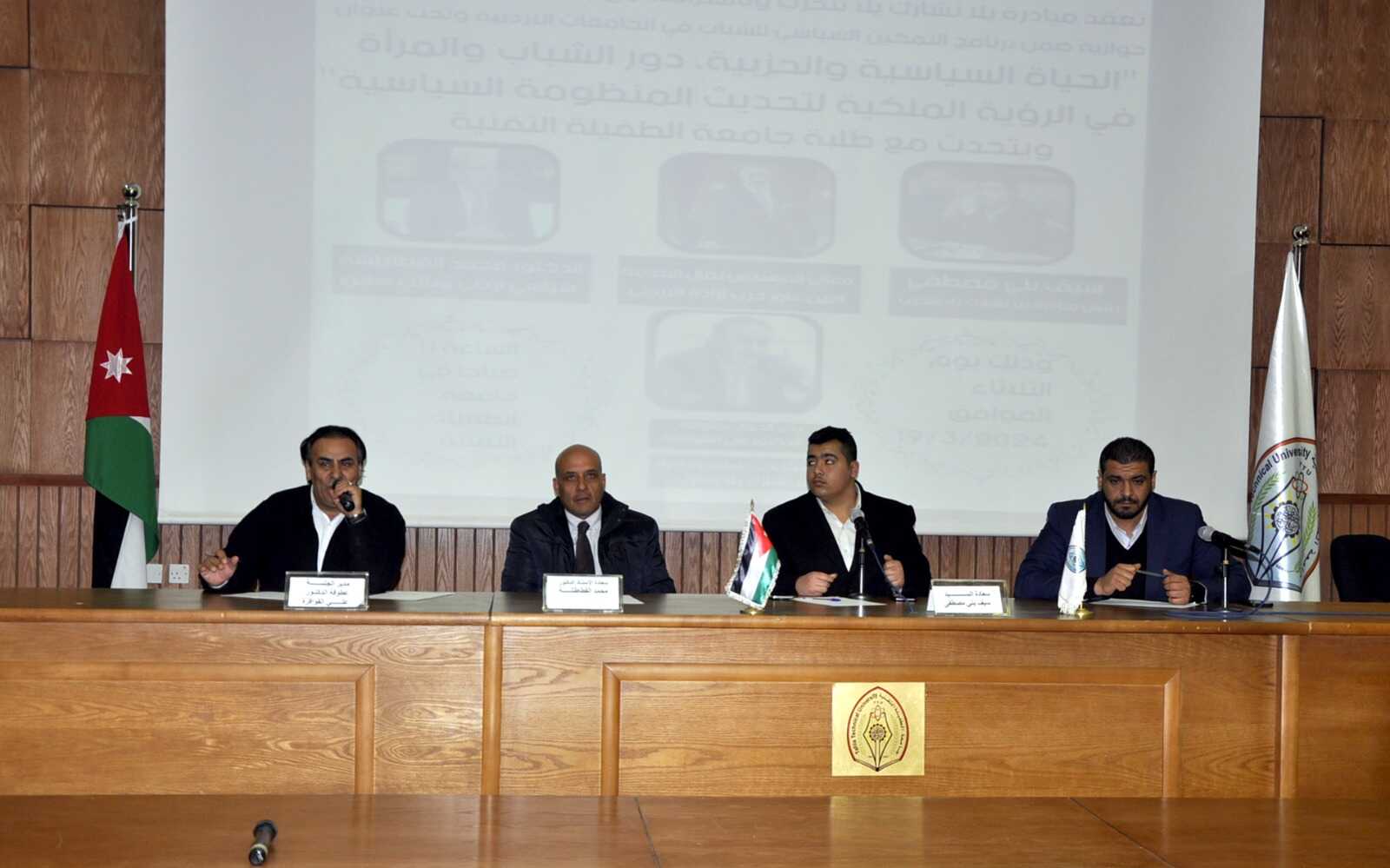 مبادرة "يلا نشارك يلا نتحزب" تقيم ندوه حوارية بعنوان (الحياة السياسية و الحزبية، دور الشباب والمرأة في الرؤية الملكية لتحديث المنظومة السياسية)