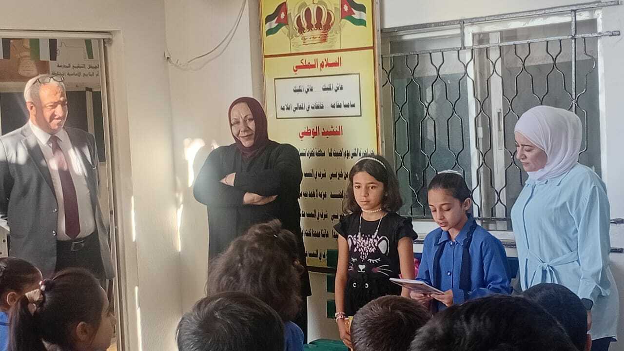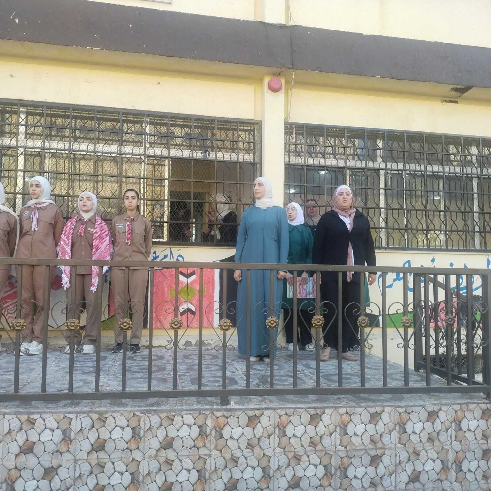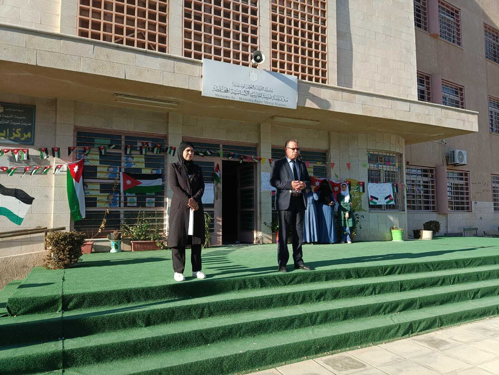 الطهراوي تشارك الطالبات الطابور الصباحي في مدرسة سكينة بنت الحسين