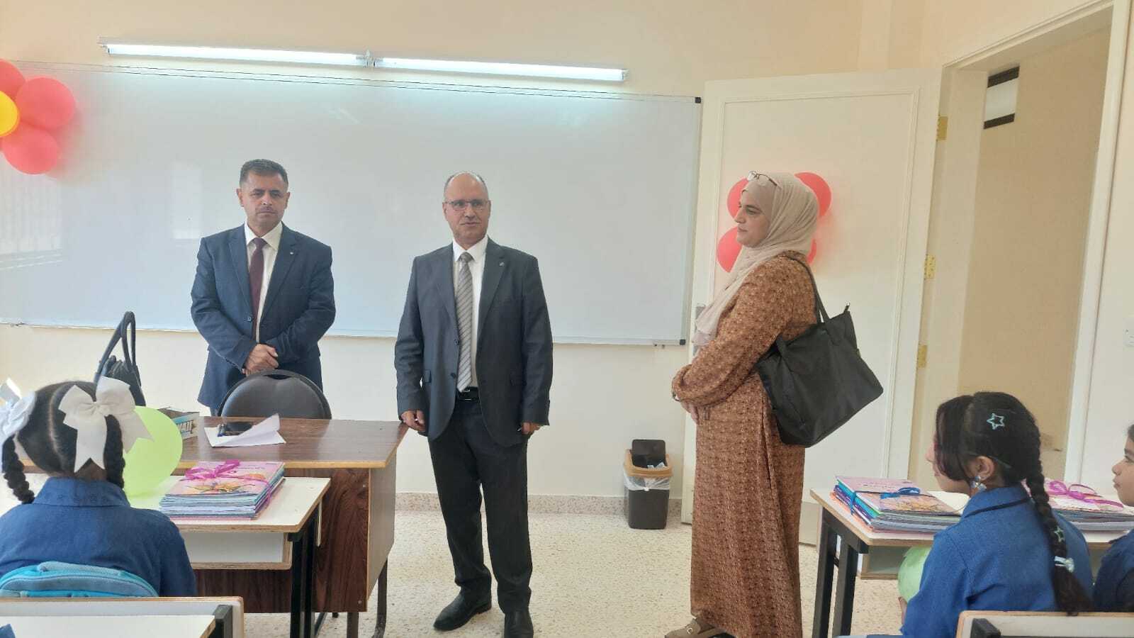 الخصاونة ومتصرف لواء الوسطية يتابعان سير العملية التعليمية في أول أيام العام الدراسي الجديد
