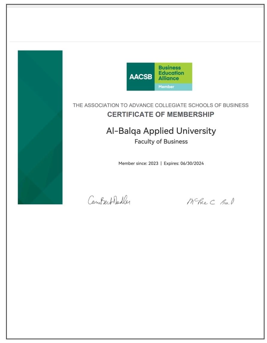كلية الأعمال في جامعة البلقاء التطبيقية تحصل على عضوية اعتماد عالمية: