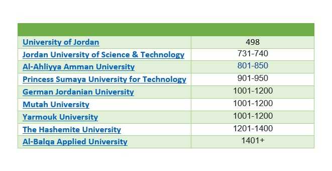 الأولى محليا و 498 عالميا .. "الاردنية " أول جامعة أردنية ولأول مرة ضمن أفضل 500 جامعة في العالم وفق تصنيف QS العالمي