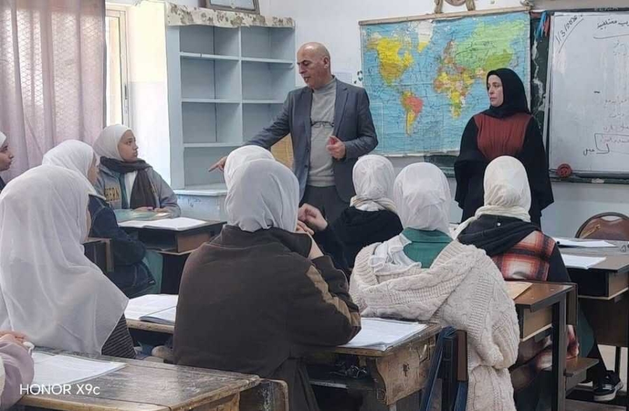 الرفوع يتابع ميدانياً واقع العمل التربوي في مدرسة عائشة بنت أبي بكر الأساسية المختلطة