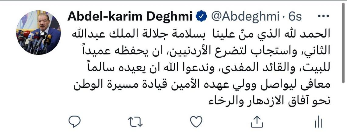 الدغمي: الحمد لله الذي منّ علينا بسلامة جلالة الملك