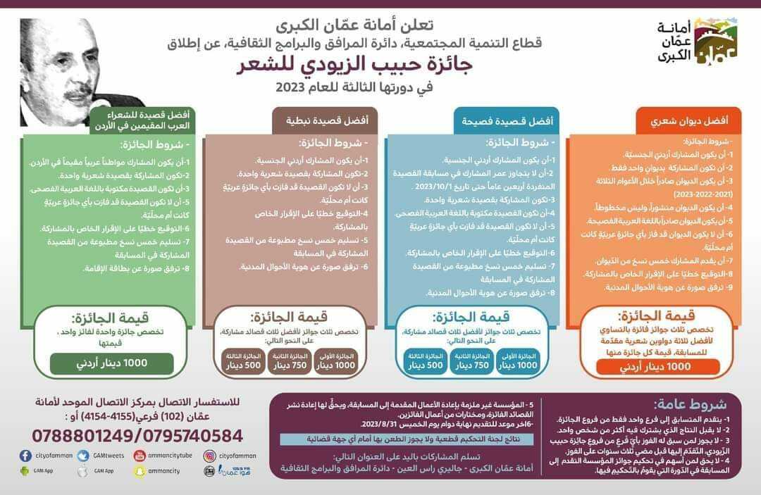 "الأمانة" تمدد فترة استقبال المشاركة بجائزة حبيب الزيودي للشعر