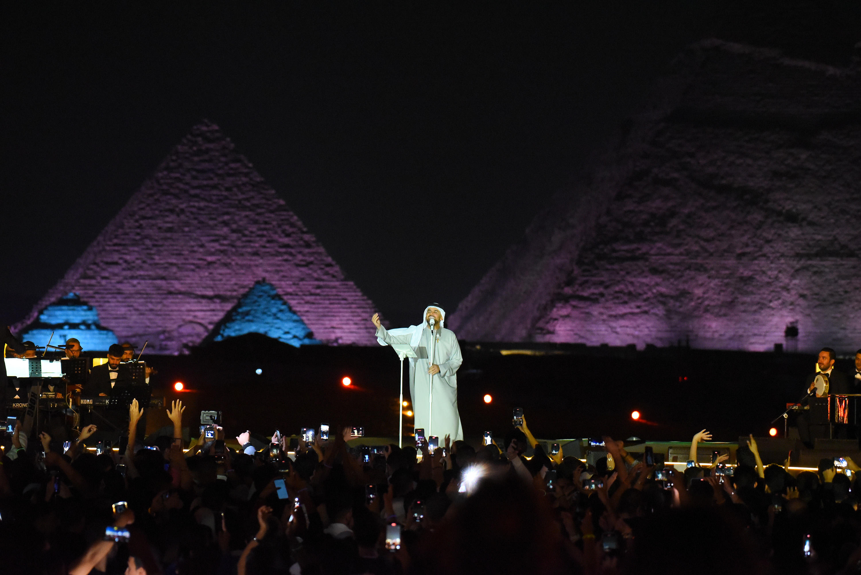 حسين الجسمي يحتفي بالعلاقات الإماراتية المصرية تحت سفح الأهرامات
