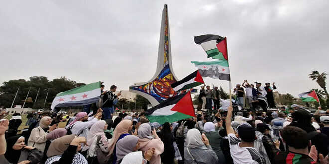 مظاهرة شعبية في دمشق دعماً لغزة ورفضاً للاعتداءات الإسرائيلية المتكررة على سوريا