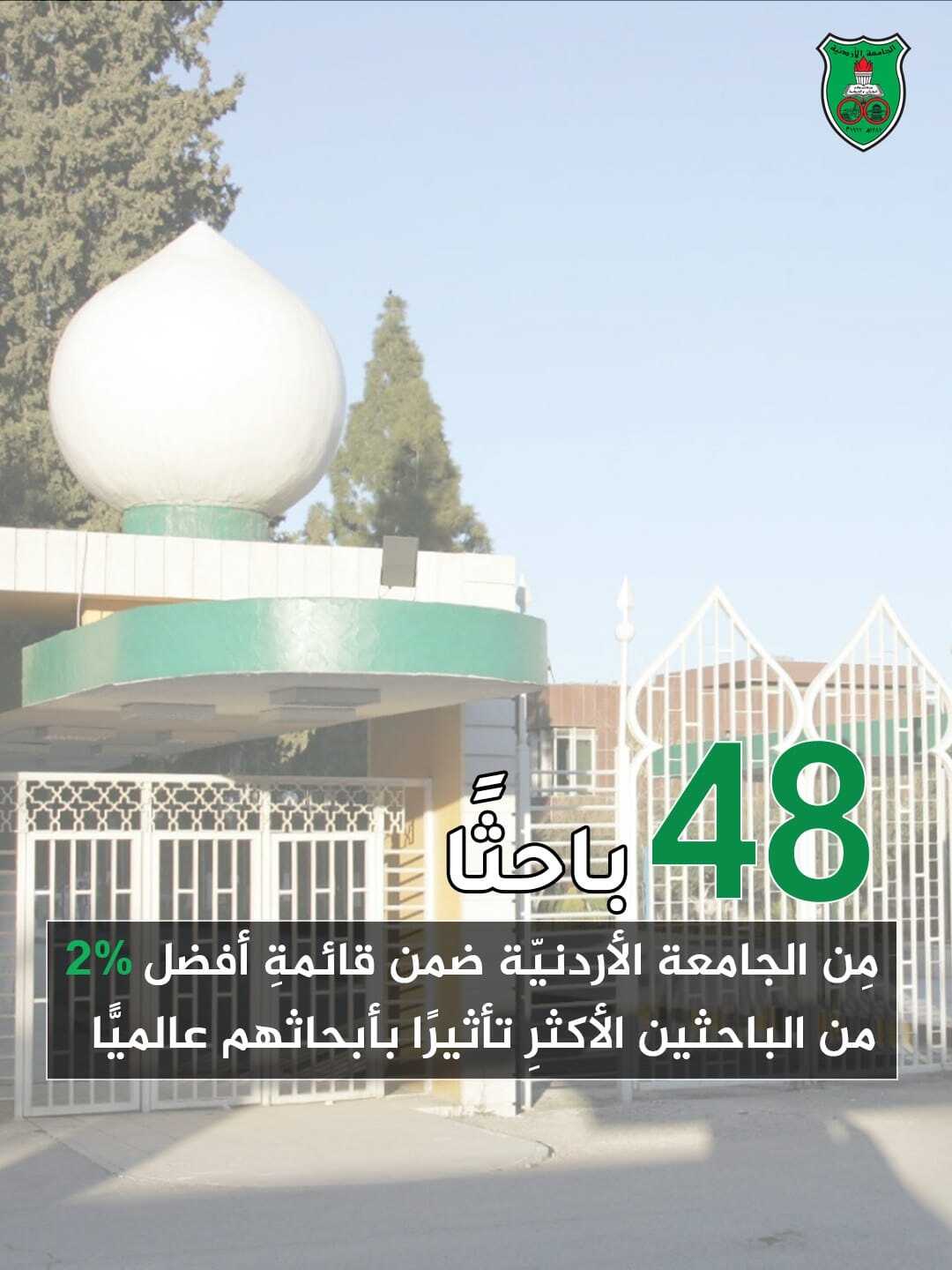 48 باحثًا مِن الجامعة الأردنيّة بقائمةِ أفضل 2% من الباحثين الأكثرِ تأثيرًا عالميًّا