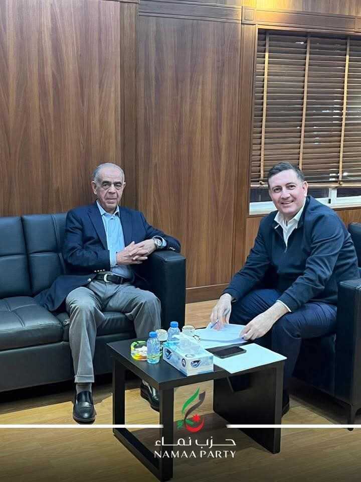 نائب رئيس الوزراء الأسبق معالي الدكتور محمد الحلايقة يزور مقر حزب نماء في عمّان لمناقشة البرنامج الاقتصادي