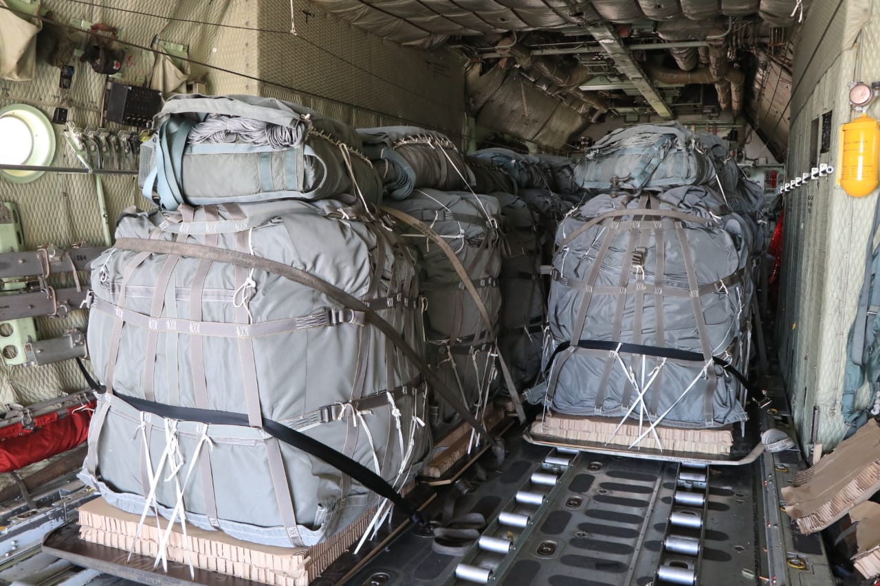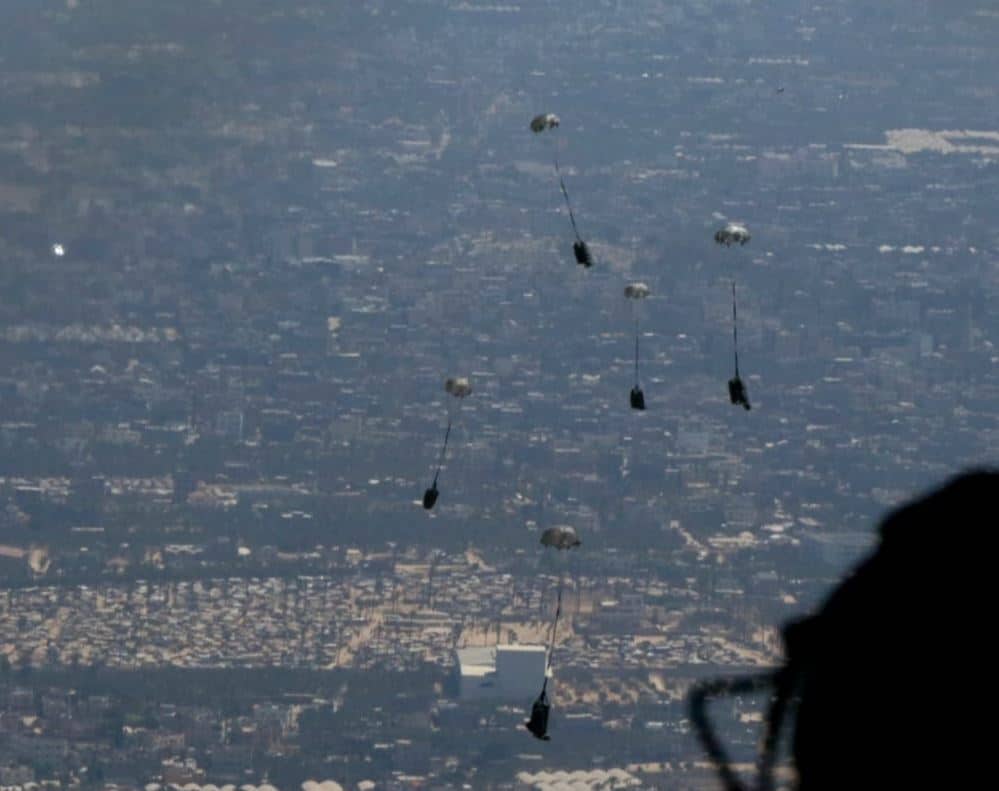 القوات المسلحة تنفذ 3 انزالات جوية لمساعدات على جنوب قطاع غزة