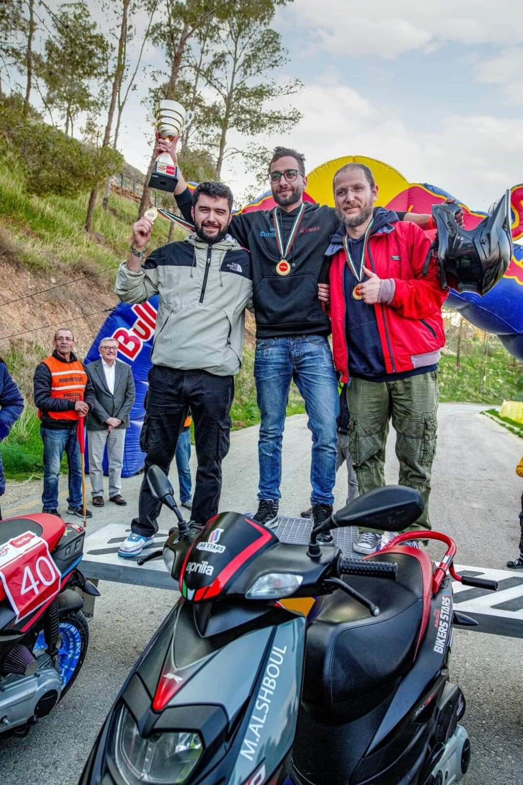 وجاء محمد الشبول الطالب في كلية لومنيوس الجامعية التقنية بالمركز الأولى متفوقا على المتسابق موسى شابسوغ صاحب المركز الثاني ، وعويم الشيشاني صاحب المركز الثالث بعد منافسة شديدة من 25 متسابق شاركوا لأول مرة في هذا النوع من السباقات، وخاضوا تجربة قيادة أقوى سكوتر بالأردن "الأبريليا 155 سي سي" على مسار تل الرمان بطول 3 كم، وارتفاع 257 مترا من نقطة البداية وحتى النهاية، واظهروا مهارة عالية في التسابق، والتعامل مع 27 منعطف مختلفة في حدتها.