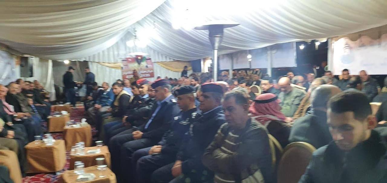 وتخلل اقامة بيت العزاء العديد من الكلمات من قبل الحضور التي تُعبر عن رفضهم لكافة أشكال العنف والتخريب حيث عبروا عن بالغ استنكارهم للحادث الأليم الذي أودى بحياة الشهداء مؤكدين وقوفهم والتفافهم حول القيادة الهاشمية الحكيمة ودعمهم المتواصل للجهود التي تبذلها الأجهزة الأمنية ليبقى الأردن واحة أمن واستقرار.