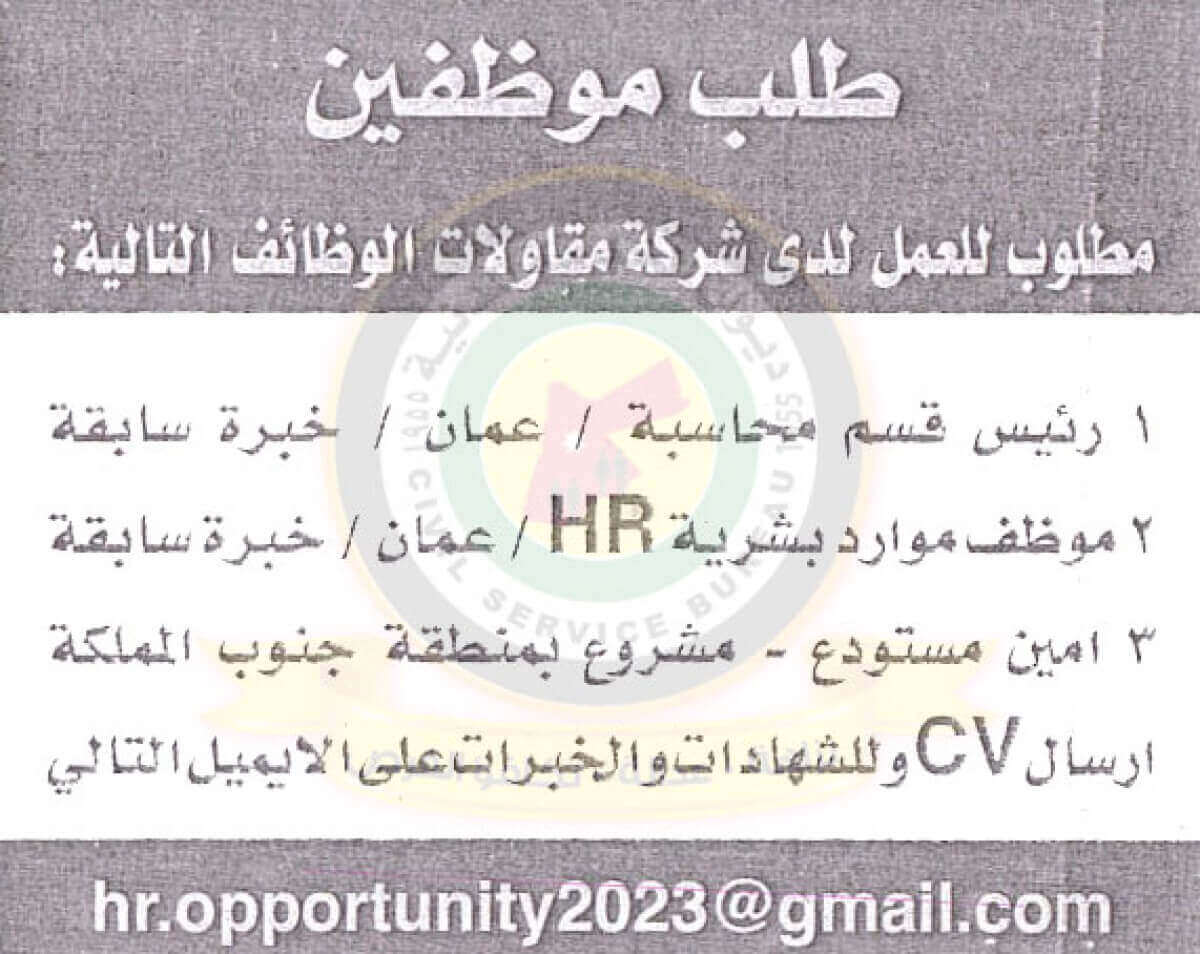 اعلان وظائف شاغرة صادر عن شركة مقاولات