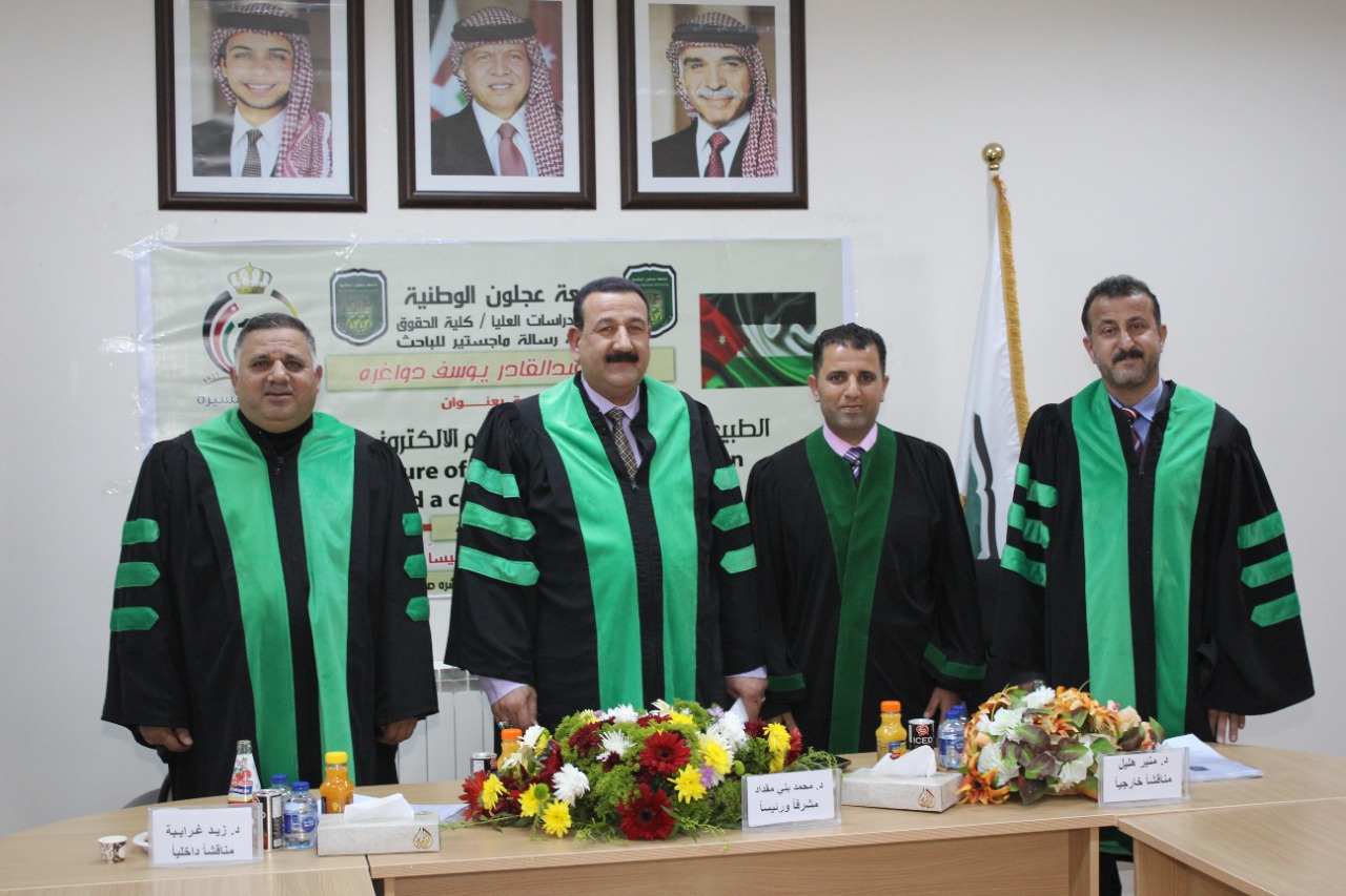 اجريت في جامعة عجلون الوطنية بكلية الحقوق / قسم القانون مناقشة رسائل ماجستير؛