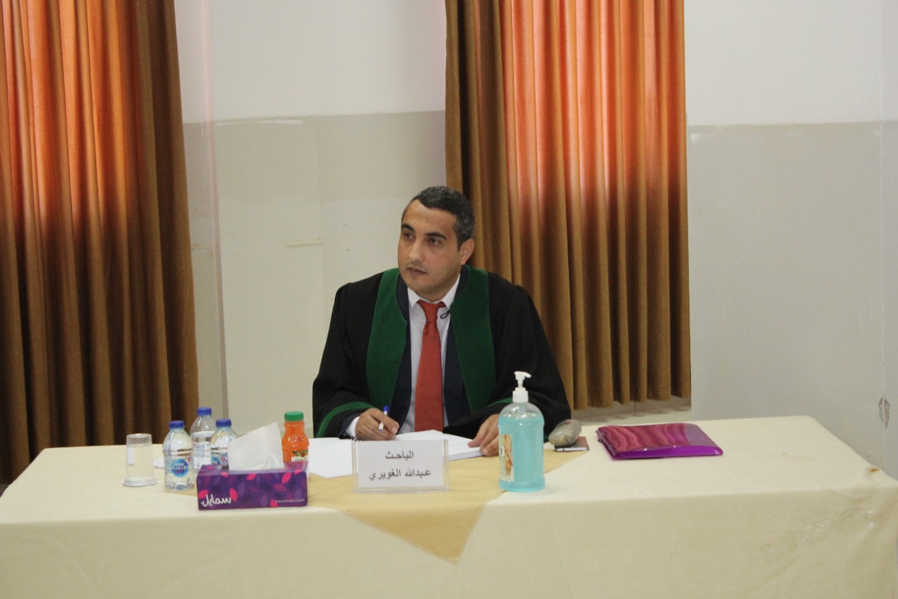 واما الرسالة الثالثة فكانت للطالب : عدنان عبدالقادر دواغره وعنوان رسالته " الطبيعة القانونية لحكم التحكيم الإلكتروني دراسة مقارنة"