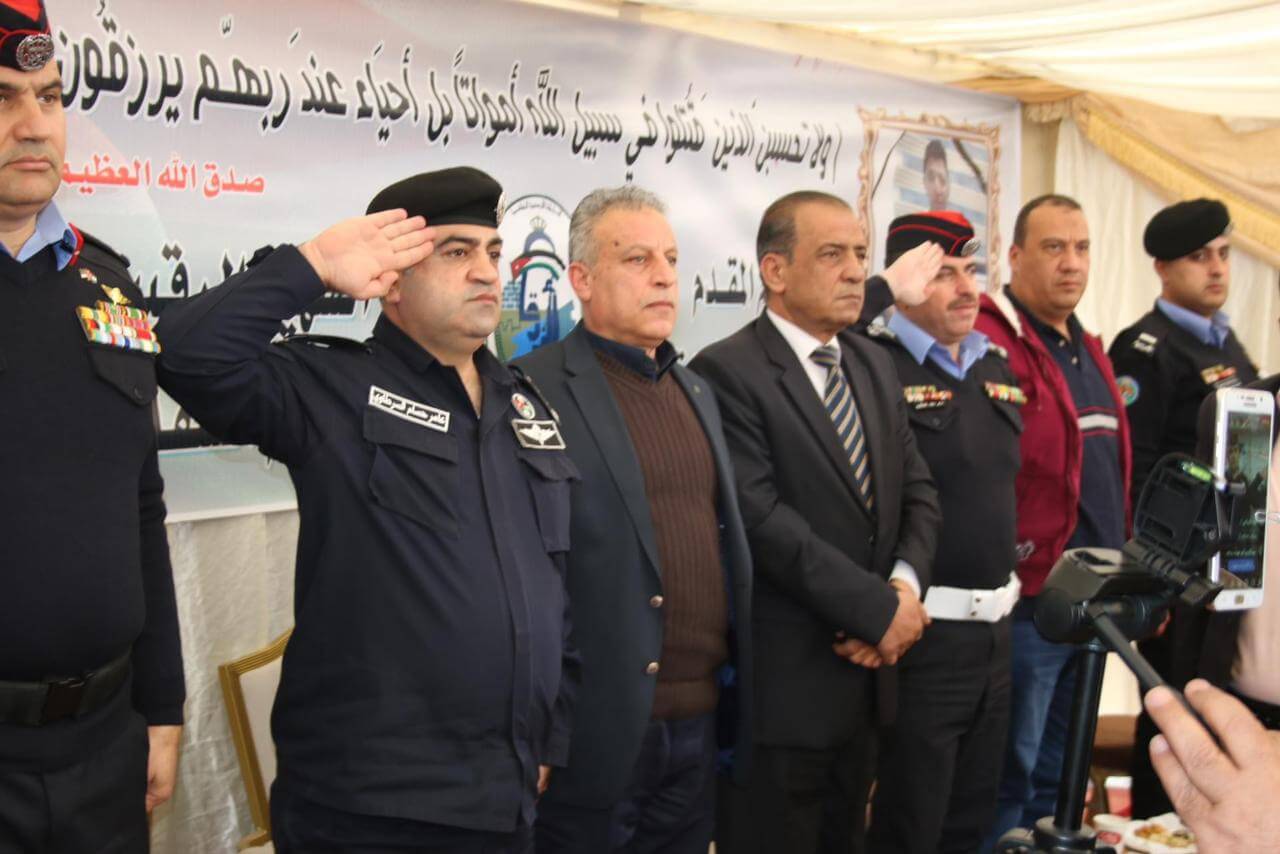 وشهدت الفعالية التي حضرها محافظ الزرقاء حسن الجبور وقائد أمن إقليم الوسط العميد الدكتور جهاد القضاة ورئيس بلدية الزرقاء المهندس عماد المومني ، ومدراء الاجهزة الامنية والناطق الاعلامي باسم مديرية الامن العام العقيد عامر السرطاوي وبمشاركة مرتبات الشرطة المجتمعية وذوي الشهداء بالإضافة إلى عدد من أبناء المجتمع المحلي في مشهد وطني يعكس مدى تعاضد أبناء الوطن بمختلف فئاته وشرائحه ، والذين جددوا وقوفهم صفاً واحد في سبيل مساندة الجهود الأمنية التي تنفذها مديرية الأمن العام بمختلف تشكيلاتها بهدف المضي قدماً في مسيرة التضحية والفداء وخدمة الأردن وأبنائه ليبقى واحة أمن وأمان تحت ظل الراية الهاشمية .