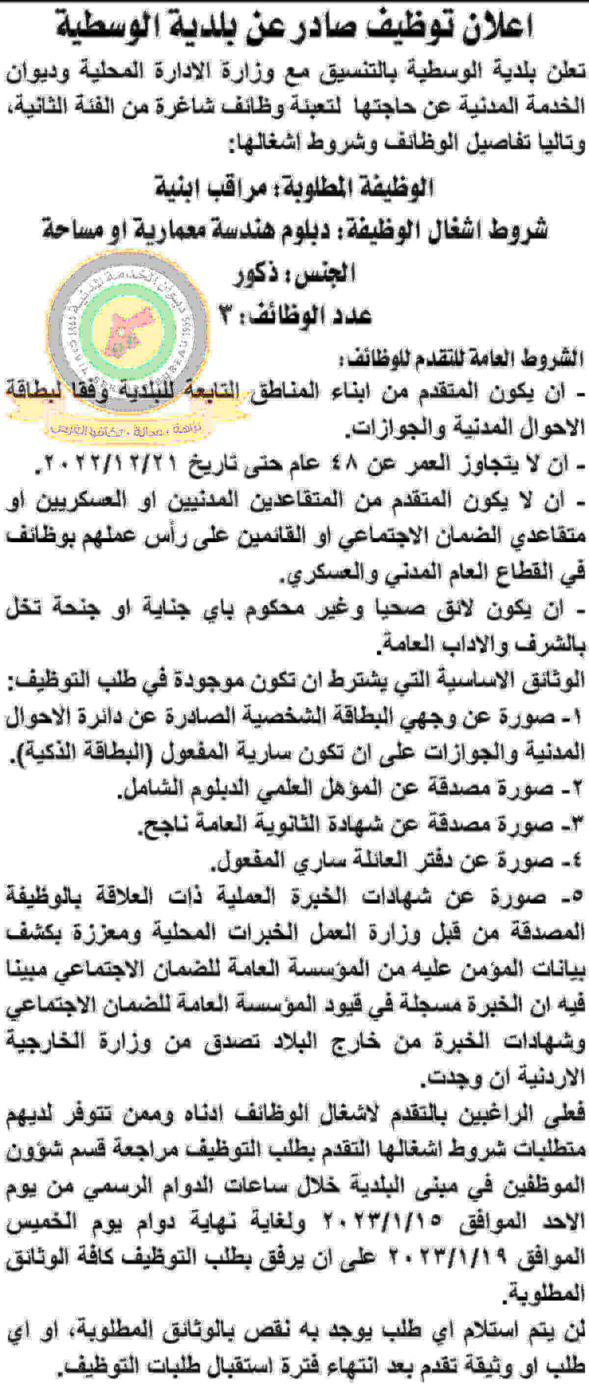22 الاعلامي- اعلن ديوان الخدمة المدنية عن وظائف شاغرة في عدة مؤسسات