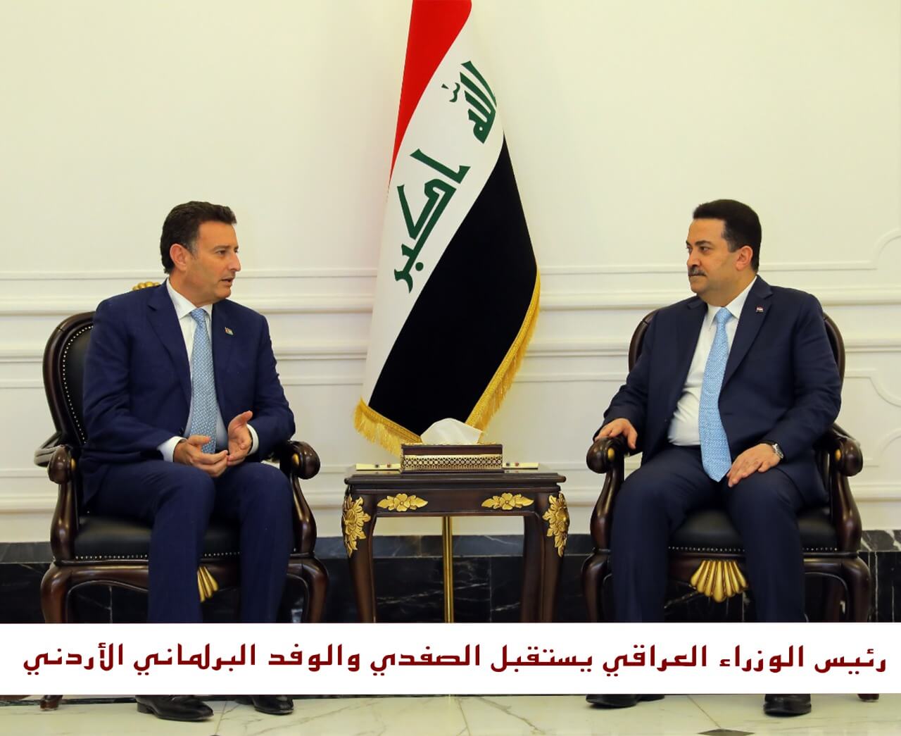 نقل رئيس مجلس النواب أحمد الصفدي ، تحيات وتقدير جلالة الملك عبد الله الثاني إلى رئيس الجمهورية العراقية عبد اللطيف رشيد، ورئيس الوزراء محمد شياع السوداني، ورئيس وزراء إقليم كردستان مسرور البرزاني.