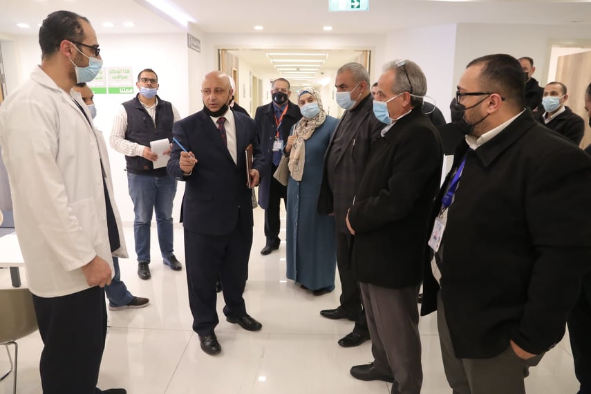 وجال رئيس لجنة الصحة النيابية الدكتور فريد حداد والنائب صفاء المومني في المستشفيات، بحضور أمين عام وزارة الصحة لشؤون الادارية والفنية الدكتورة الهام خريسات، ومدير إدارة مستشفيات البشير الدكتور علي العبداللات وعدد من مدراء المستشفيات والمديريات. وأكد النائب حداد ضرورة دعم موازنة وزارة الصحة ومستشفيات البشير، لافتا إلى أن "مستشفيات البشير تعد نصف القطاع الصحي المدني في المملكة".