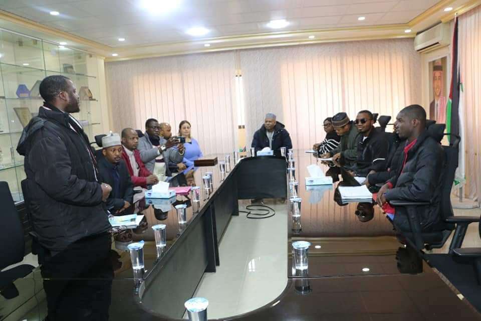 22 الاعلامي - استقبل رئيس جامعة جرش الأستاذ الدكتور يوسف أبو العدوس بحضور نواب رئيس الجامعة الأستاذ الدكتور أحمد الحوامدة، والأستاذ الدكتور زياد ربيع، وعميد كلية الشريعة الأستاذ الدكتور حسن شموط، القائم بأعمال السفارة النيجيرية في عمان كمفوت عمر والوفد المرافق له مديرة السفارة اوكيه اجونميلوا، والسكرتير الثاني في السفارة عبدالرحمن عمر ماداكي، لبحث سبل التعاون المشترك بين الجانبين، مستعرضين أوضاع الطلبة النيجيريين الدارسين في الجامعة.