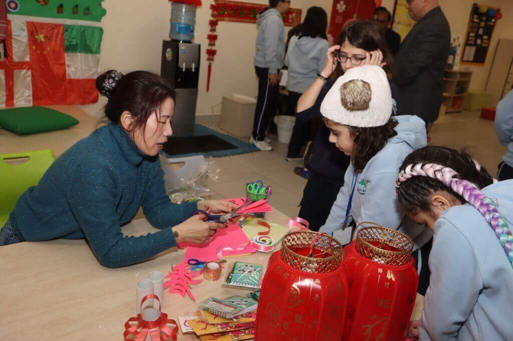 وشارك أكثر من مائة طالب وطالبة من صفوف المراحل الابتدائية في أنشطة عيد الربيع الصيني، وتضمنت الانشطة فقرات كتابة الخط الصيني، قص وتشكيل الورق الصيني، حفل الشاي الصيني، بالاضافة الى فقرة فنون الدفاع عن النفس.