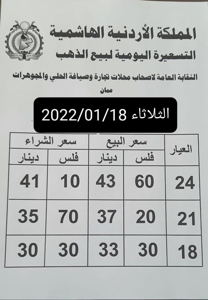 وبحسب التسعيرة اليومية الصادرة عن النقابة العامة لأصحاب محال تجارة وصياغة الحلي والمجوهرات فقد استقر سعر بيع الغرام الواحد من عيار 21 قيراط الأكثر طلبا بين المواطنين عند 37.2 دينارا، والشراء عند 35.7 دينارا.