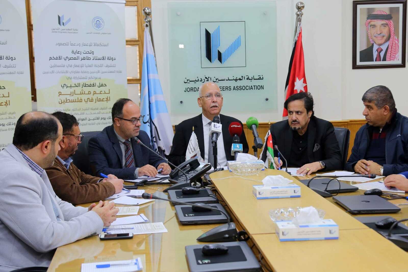 22 الاعلامي - تحت رعاية دولة رئيس الوزراء الأسبق السيد طاهر المصري، تقيم اللجنة العليا للإعمار في فلسطين، ونقابة المهندسين الأردنيين ونقابة المقاولين حفل افطار خيري لدعم مشاريع الإعمار في فلسطين، في تمام الساعة السادسة من مساء يوم الاثنين 10 نيسان الجاري بمطعم جبري المركزي في عمان.