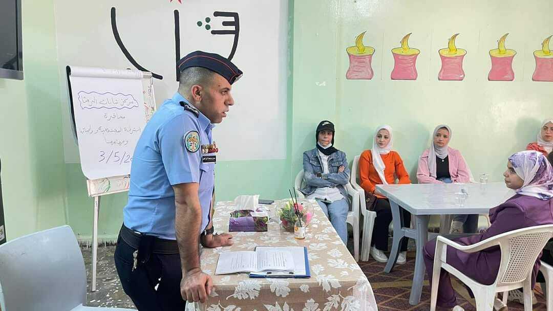 22 الاعلامي - أقام مركز شابات الرمثا محاضرة بعنوان "الشرطة المجتمعية واجباتها ومهامها"، قدمها الملازم حمزه ذيابات من قسم الشرطة المجتمعية بالرمثا، بحضور ومشاركة 20 شابة ضمن الفئة العمرية 15 _ 17 عام.