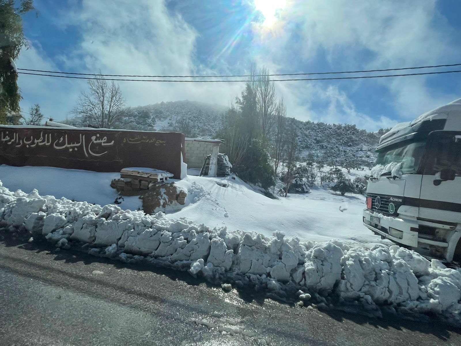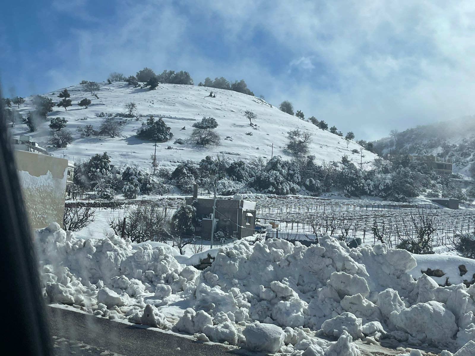 مقتطفات من المناطق والقرى والبلدات التي شهدت تساقطا للثلوج منها المناطق المرتفعه راس منيف عبين عبلين سامتا اشتفينا بلاص منطقة القاعدة عنجرة.