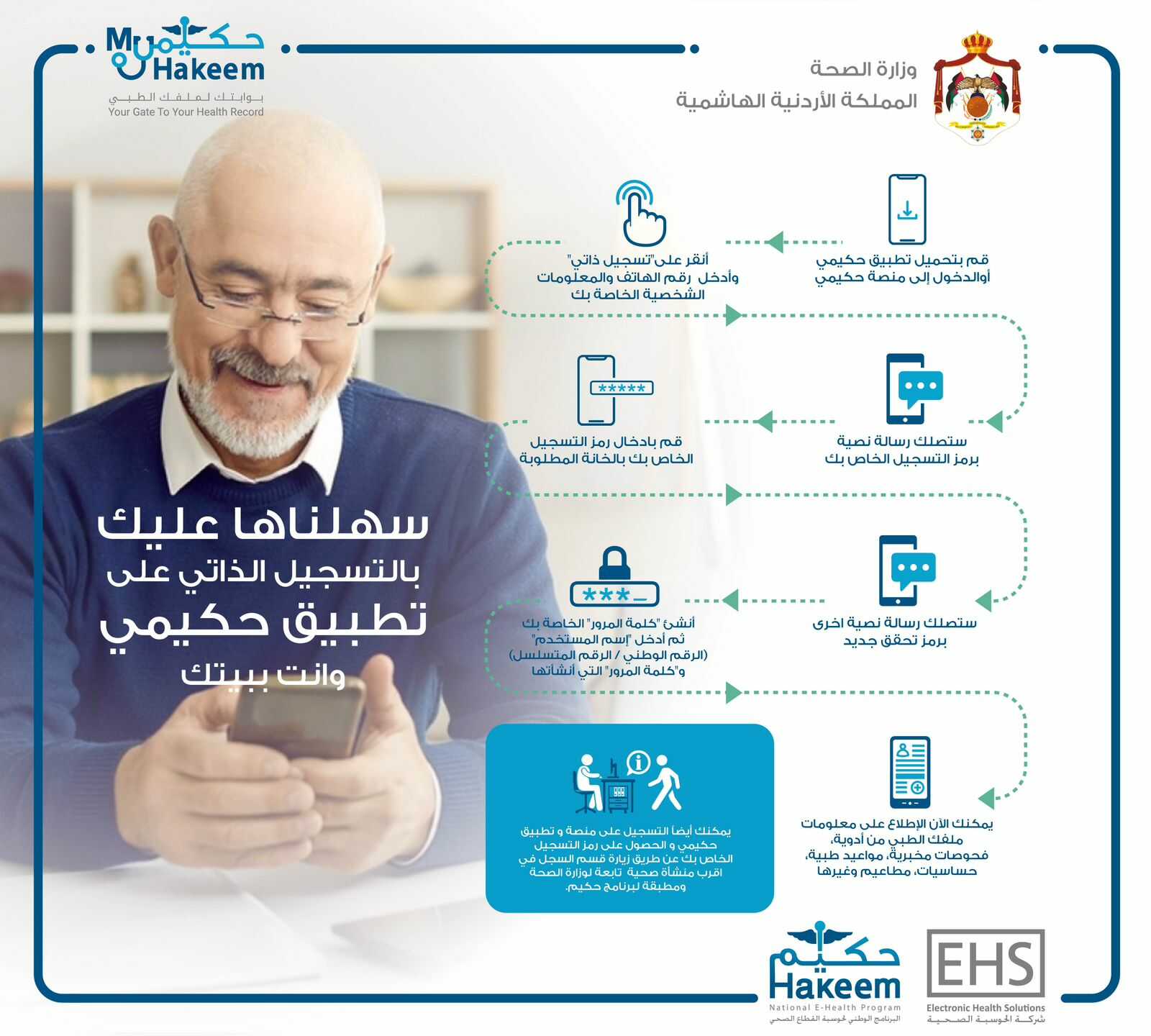 ودعت الوزارة إلى تحميل تطبيق حكيمي على الهواتف الذكية للمرضى والتسجيل ذاتياً على هذا التطبيق دون الحاجة لمراجعة المستشفيات والمراكز الصحية التابعة لها لإتمام ذلك كما كان في السابق.