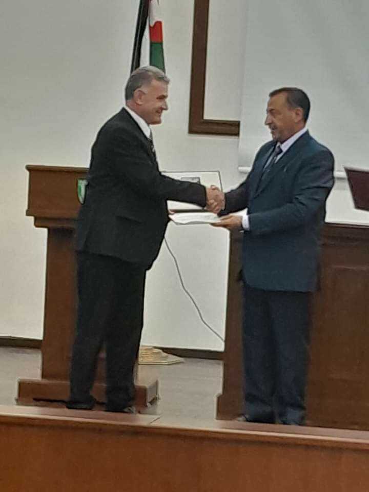 وتخلل اليوم العلمي اهداء من دائرة المكتبة الوطنية للكليه نسخة من مجلدات جريدة الشرق العربي .