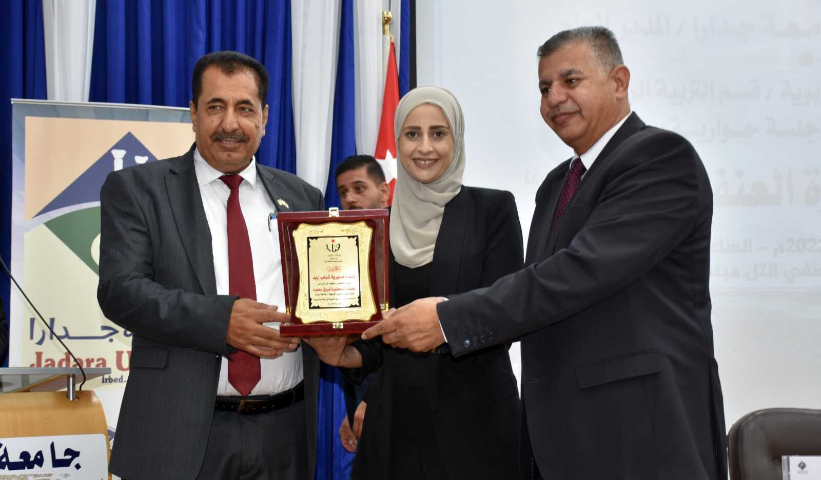 22 الاعلامي - نظمت مديرية شباب محافظة إربد اليوم وبالتعاون مع جامعة جدارا جلسة حوارية بعنوان "الحد من ظاهرة العنف الرياضي"، تحت رعاية رئيس هيئة مديري جامعة جدارا د.شكري المراشدة بحضور رئيس الجامعة د.محمد طالب عبيدات ومدير شباب إربد يحيى المومني الهيئة التدريسية، بمشاركة ٢٠٠ طالباً من طلبة الجامعة.