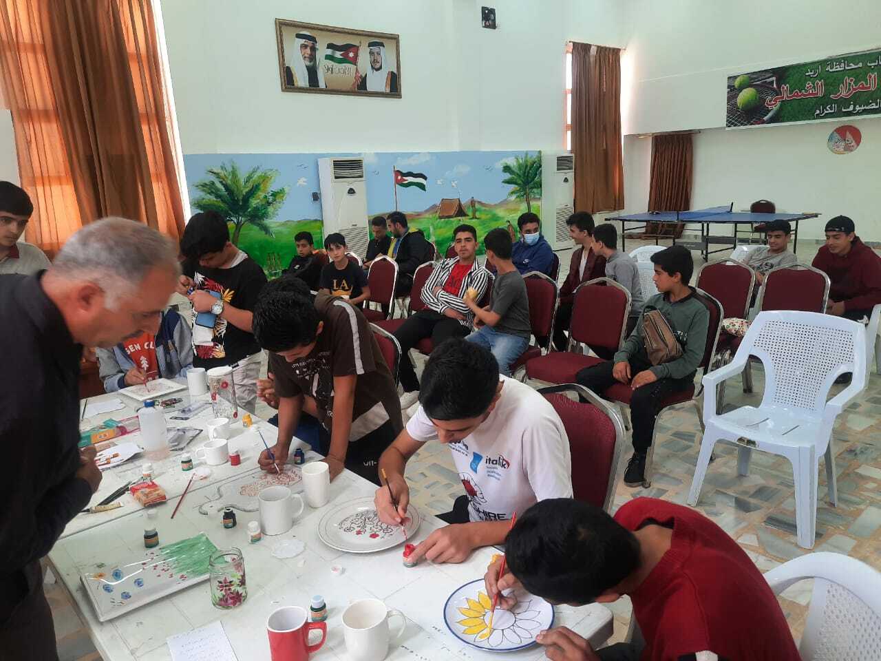 تهدف الورشة إلى تطوير مهارات الشباب و تنمية المواهب الفنية لديهم وإكسابهم مهارات جديدة في الرسم وتشجيعهم للتوجه نحو المشاريع الصغيرة.