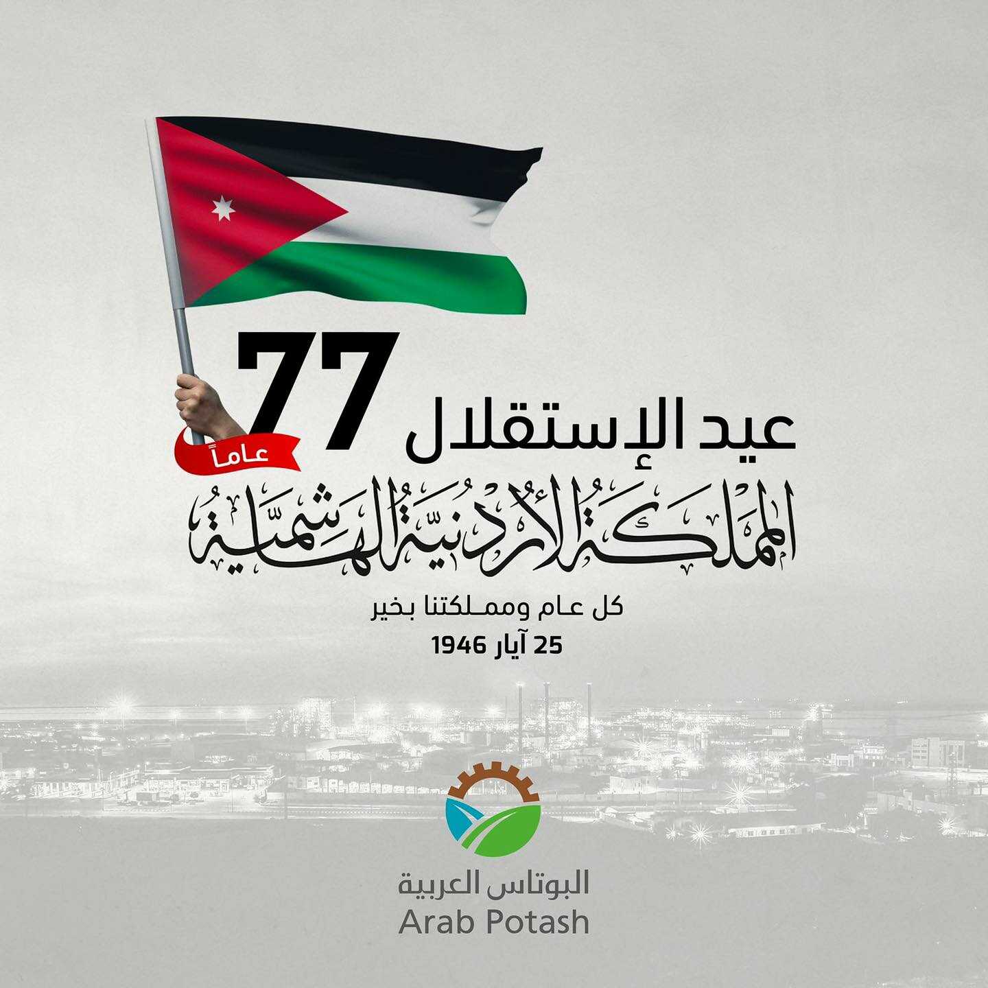 والأسرة الهاشمية والشعب الأردني بذكرى عيد الاستقلال السابع والسبعين