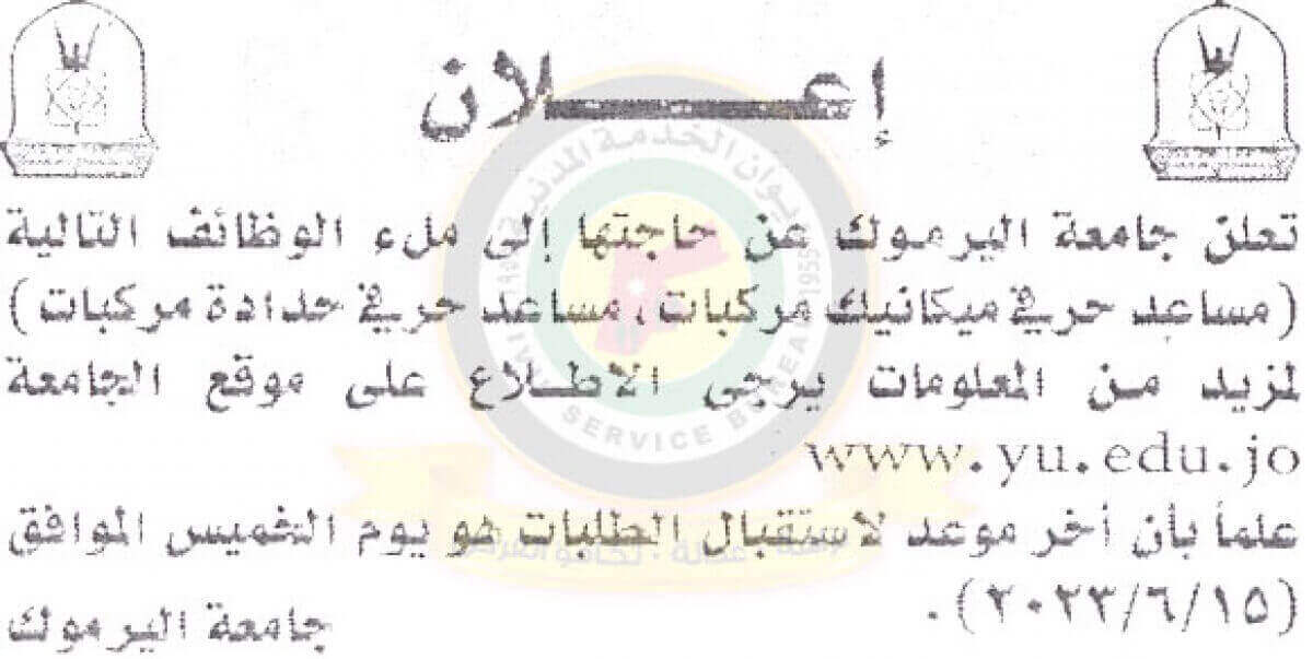 اعلان توفر وظائف شاغرة صادر عن جامعة اليرموك