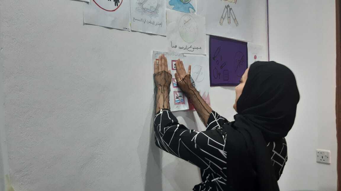 حيث قامت المشاركات برسم رسومات لتبين أهمية الحفاظ على مجتمع آمن في فصل الصيف .
