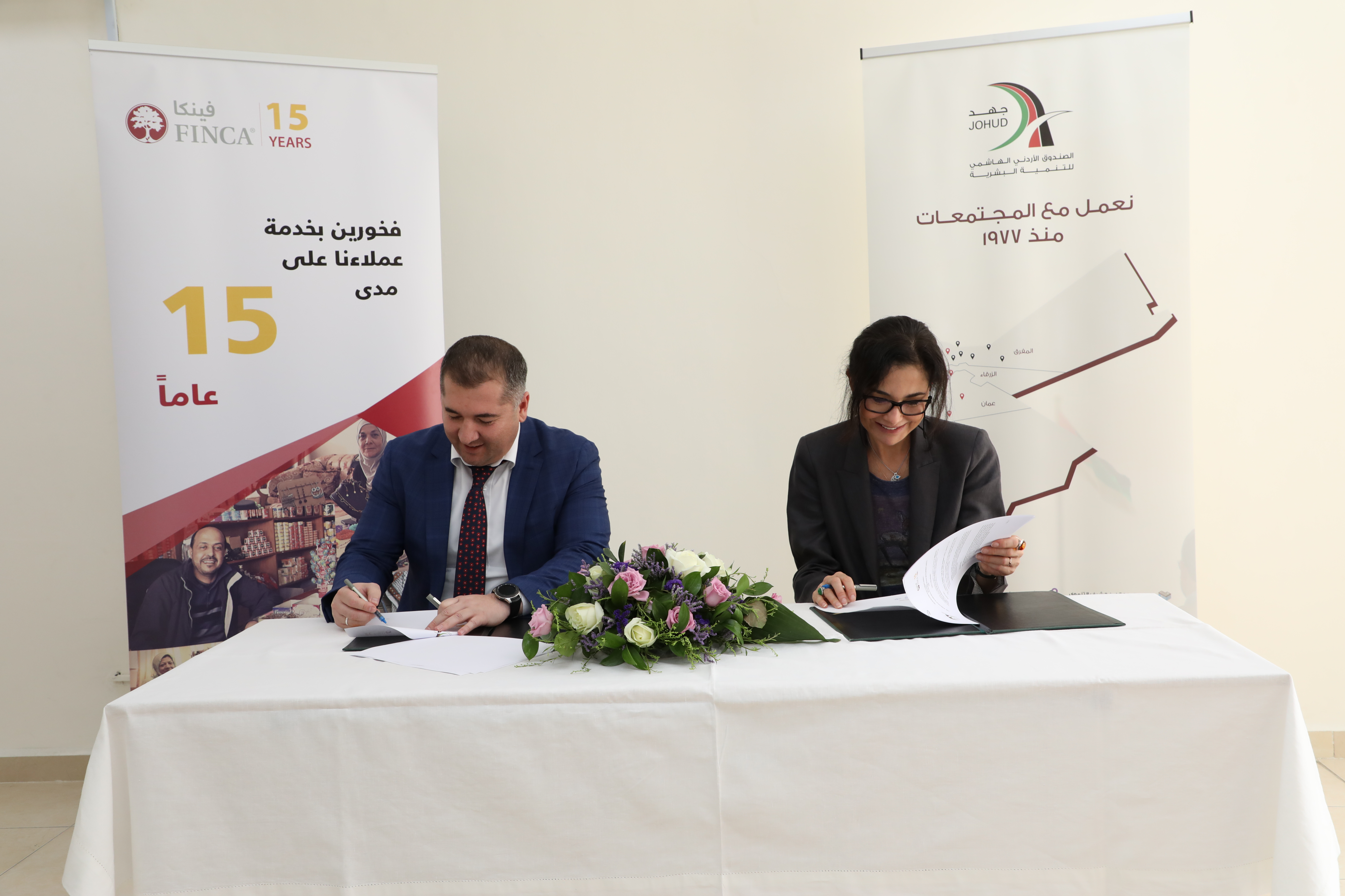 وقع الصندوق الأردني الهاشمي للتنمية البشرية (جهد)، وفينكا الأردن للتمويل الأصغر، مذكرة تفاهم للتعاون في تنفيذ أهدافهما المتعلقة بدعم المجتمعات المحلية والمساهمة في تنميتها الاقتصادية.