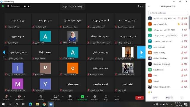 عقد مركز شباب الوسطية بمديرية شباب اربد اليوم محاضرة عن الخطة الوطنية الاردنية عبر تطبيق زووم بمشاركة 70 شاب وفتاة .