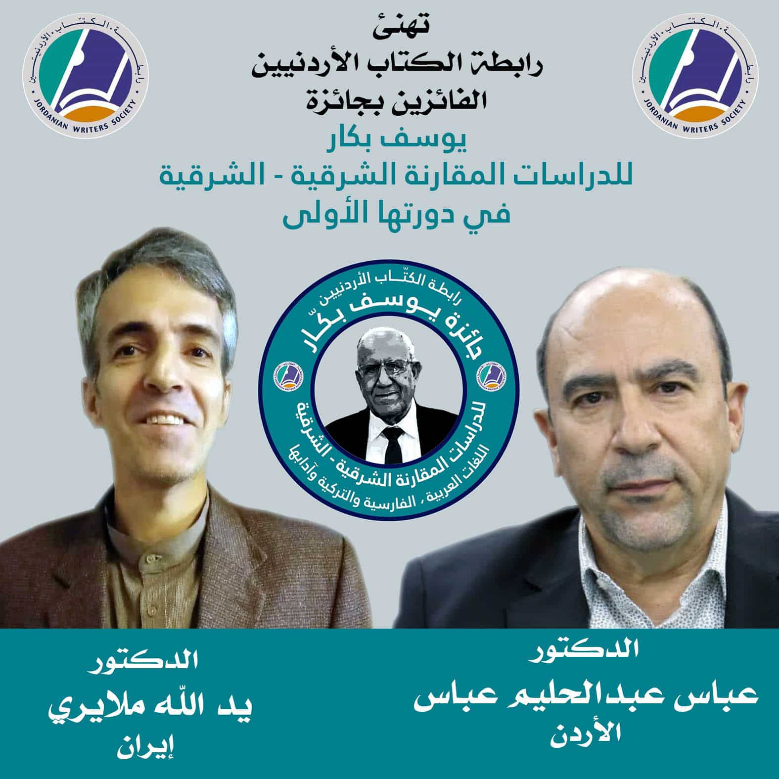 22 الاعلامي- أعلنت الأمانة العامة لـ "جائزة يوسف بكار للدراسات الشرقية" عن الفائزين بجائزة دورتها الأولى، التي تنظمها رابطة الكتاب الأردنيين، بدعم من الدكتور يوسف بكار، وتبلغ قيمتها ثلاثة آلاف دولار أميركي.