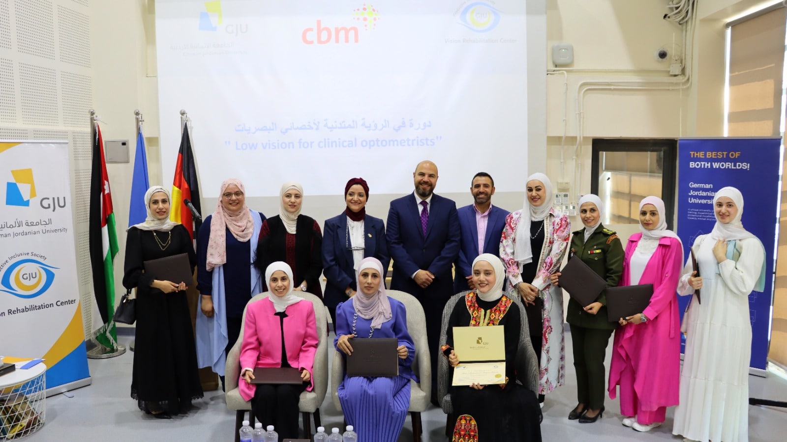 احتفل مركز التأهيل البصري في الجامعة الألمانية الأردنية بتخريج المشاركين في دورة الرؤية المتدنية لأخصائيي البصريات، الذين يمثلون وزارة الصحة، والخدمات الطبية الملكية، والقطاع الخاص.