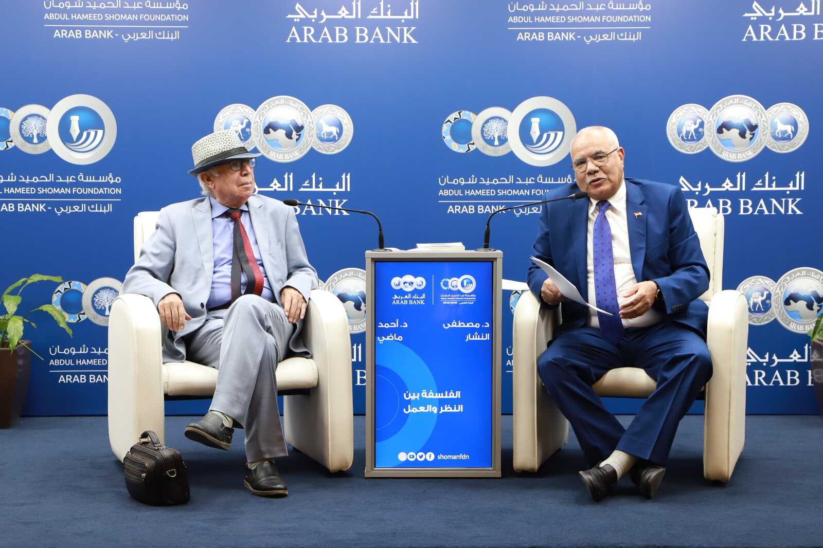 22 الاعلامي - استضاف منتدى عبد الحميد شومان، مساء أمس الاثنين، رئيس الجمعية الفلسفية المصرية، الدكتور مصطفى النشار، في محاضرة بعنوان " الفلسفة بين النظر والتطبيق " أدارها رئيس جمعية الثقافة الفلسفية، الدكتور أحمد ماضي.