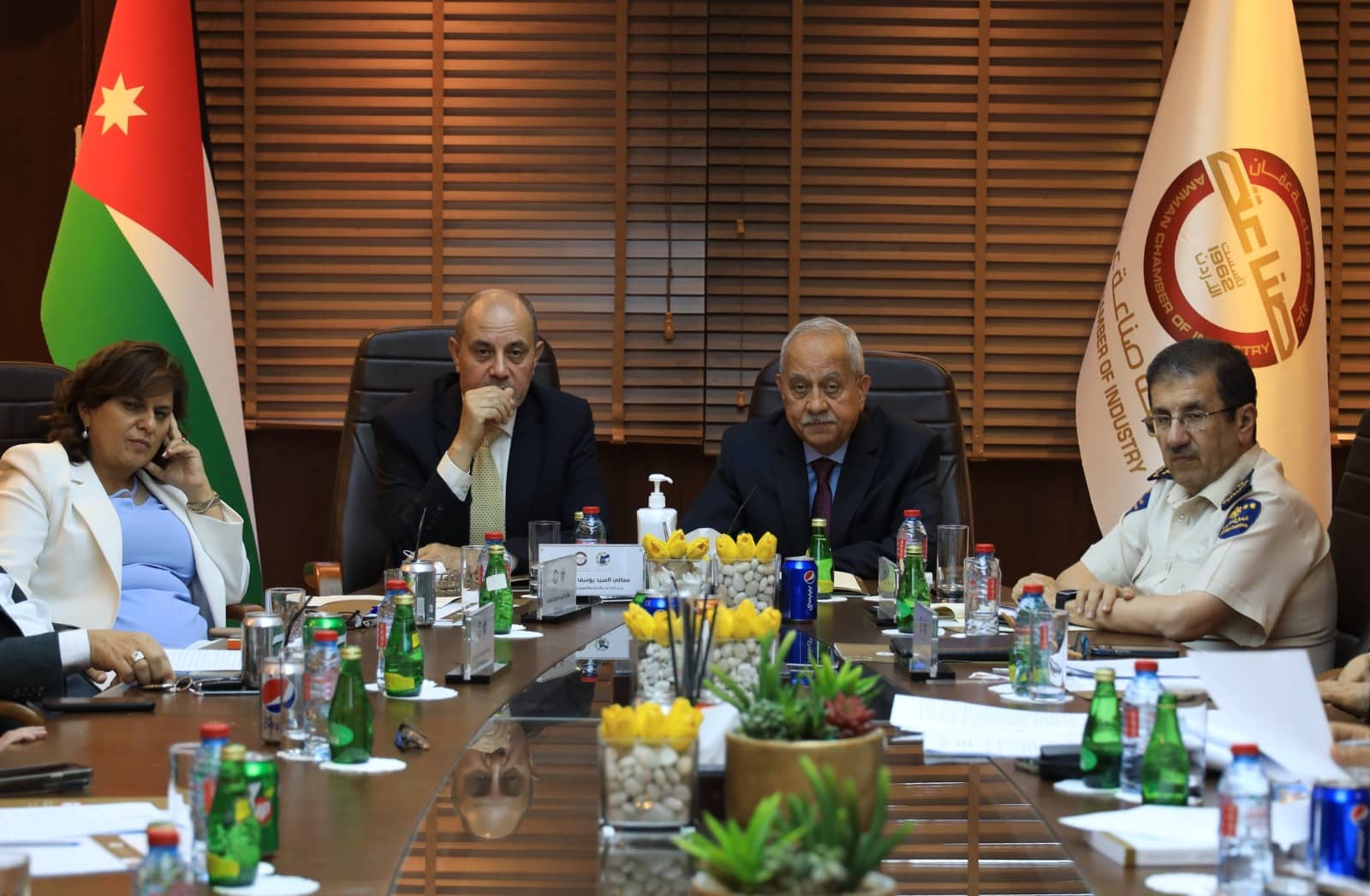 بحث لقاء عقد بمقر غرفة صناعة عمان بحضور وزيري الصناعة والتجارة والتموين ووزير العمل يوسف الشمالي، والاستثمار خلود السقاف، ومدير عام دائرة الجمارك لواء جمارك جلال القضاة، العديد من القضايا التي تهم القطاع الصناعي.