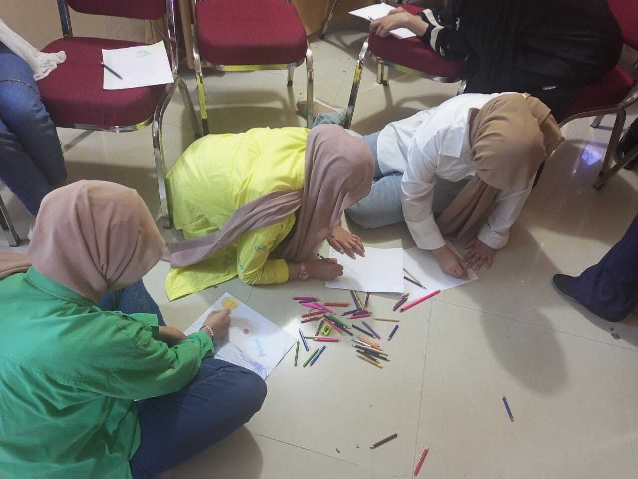 تحدث المدربة يسر عبيدات للمشاركين عن المهارات الإجتماعية منها الإتصال والتواصل والإنصات، ومهارة تقدير الذات، تبٍع التدريب أنشطة كسر جمود.