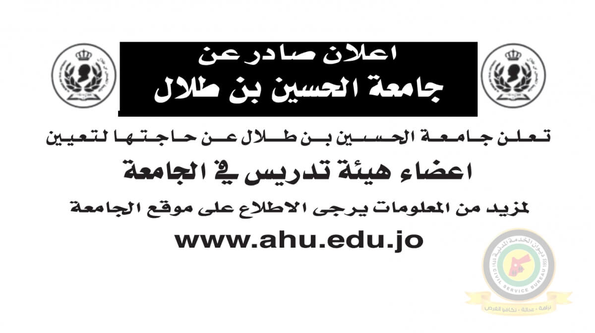 اعلان تعيين اعضاء هيئة تدريسية صادر عن جامعة الحسين بن طلال