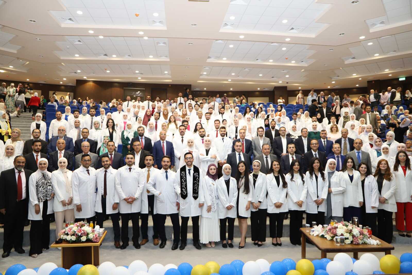 كما دعا الدكتور الحموري الزملاء الاطباء الجدد الى الاهتمام برعاية المرضى والتسلح بالمعرفة الطبية والتعليم والتحسين القائم على الممارسة والذي يتضمن التحقق والتقييم لرعاية المريض بشكل افضل .بالإضافة الى التمتع بمهارات العلاقات الشخصية والتواصل والمهنية.