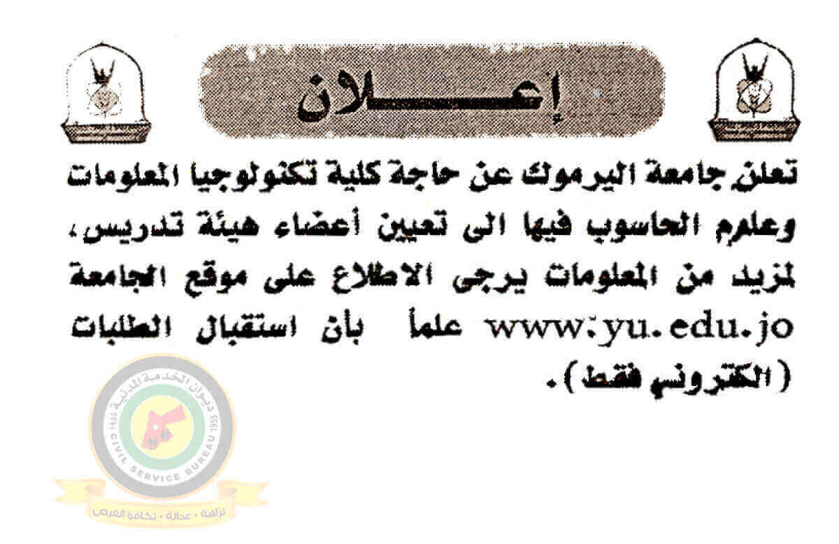 اعلان تعيين اعضاء هيئة تدريسية صادر عن جامعة اليرموك