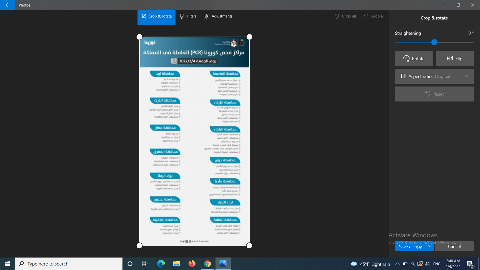 مراكز فحص كورونا (PCR) العاملة يوم الجمعة 2022/2/4