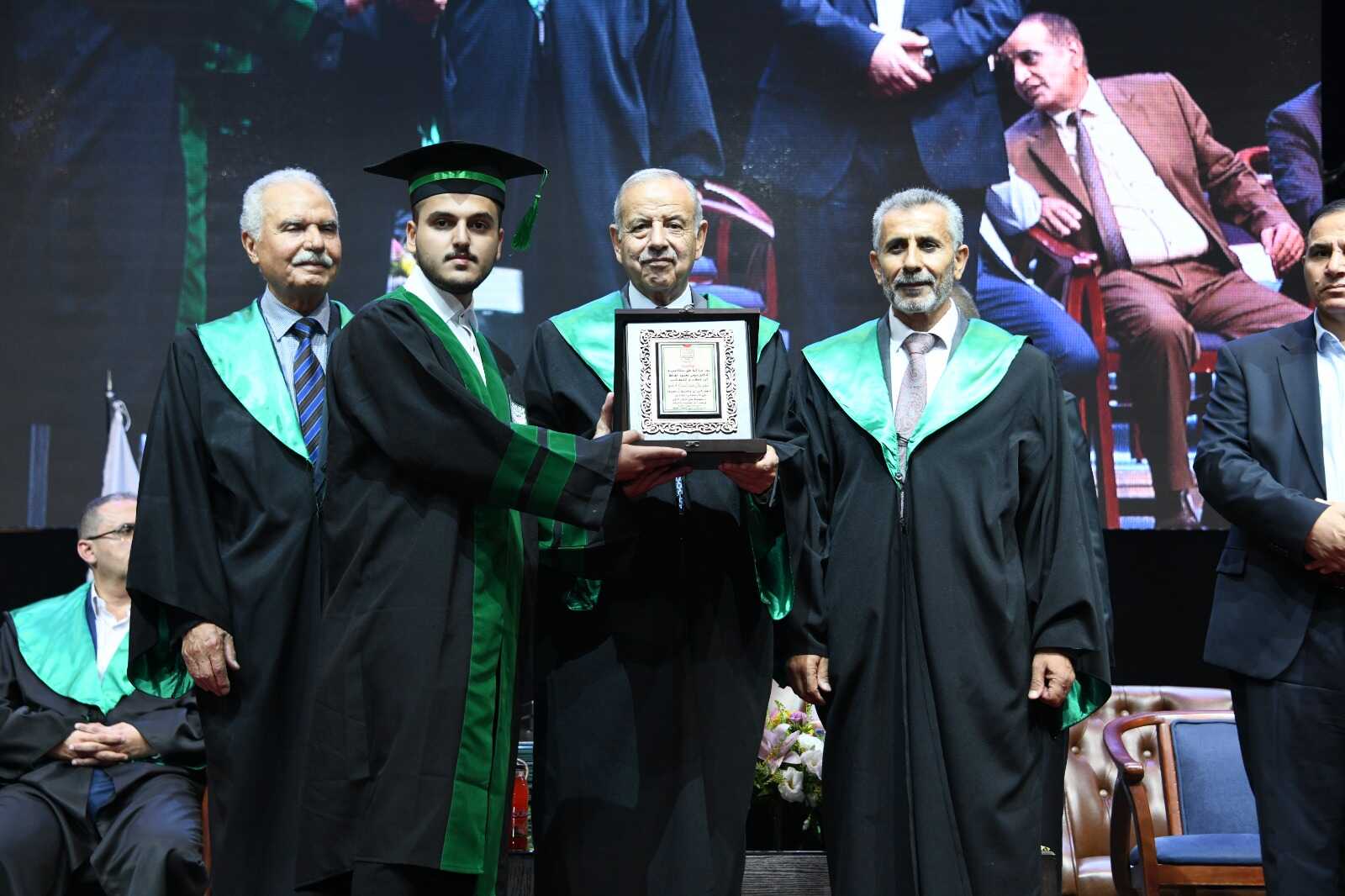 وفي ختام الحفل كرم عميد كلية حطين الجامعيه راعي الحفل معالي نائب رئيس الوزراء ووزير الإدارة المحلية توفيق كريشان